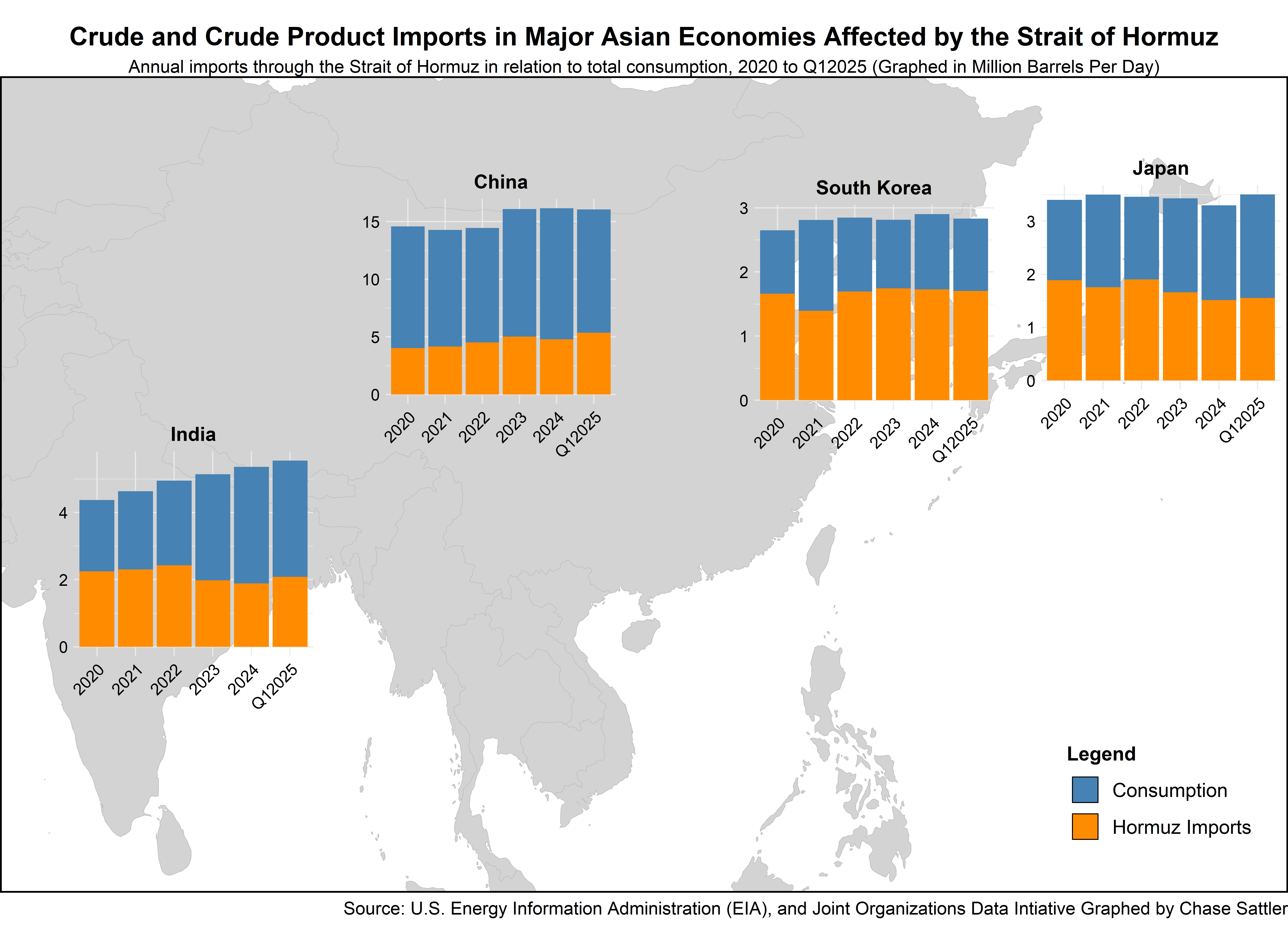 With a big data assist from energy chart guru Rory Johnston, Chase Sattler provided a timely (at least for now) visualization of the dependence of Asia-Pacific countries on imports moving through the Strait of Hormuz. The map/graph combo is great, and it was fantastic to be able to connect Chase with Rory for help that I could not provide.